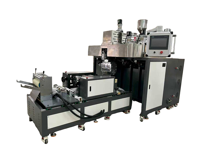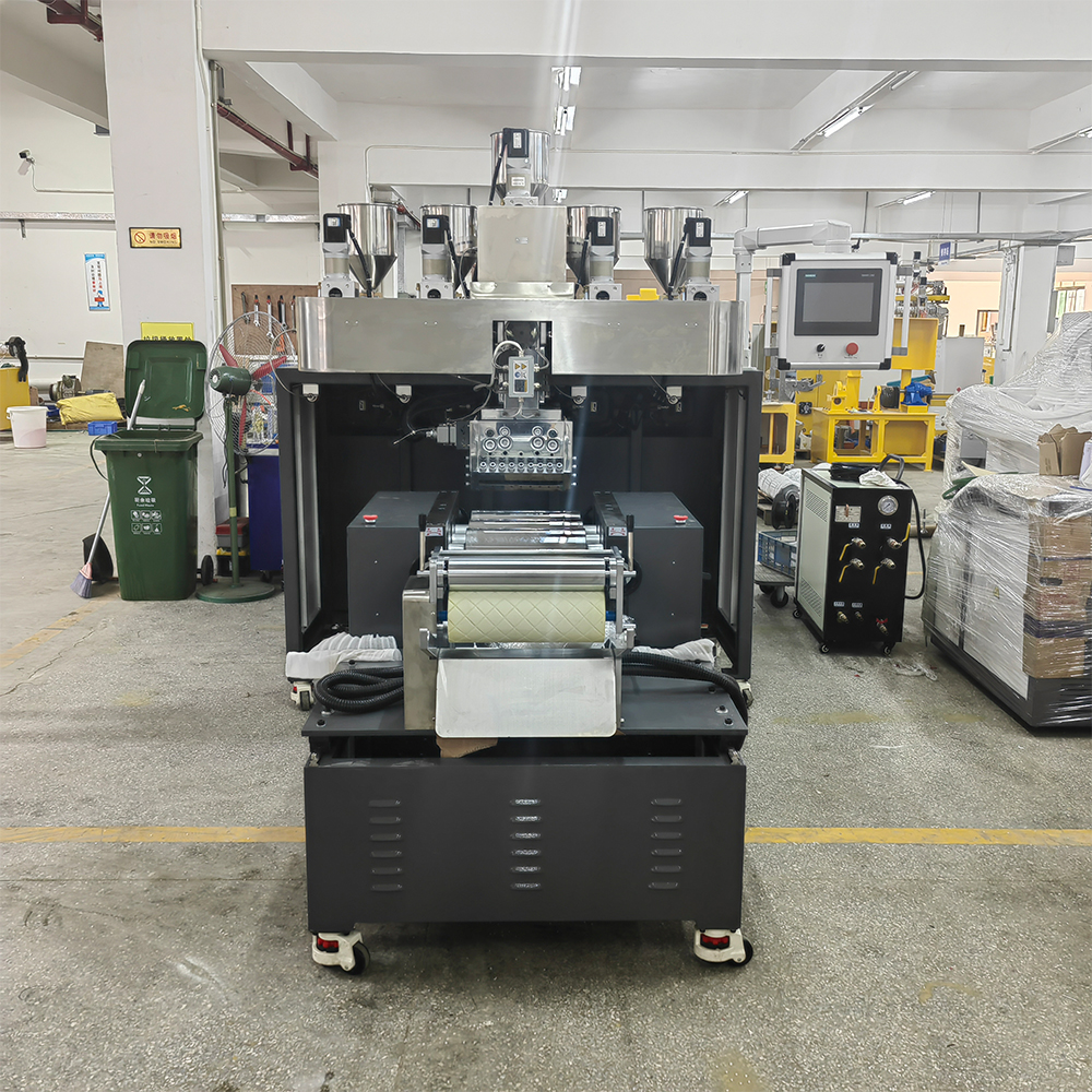 小型五層共擠流延機是一種專為實驗室或小規模生產設計的精密設備,主要用于模擬連續流延加工過程,研究塑料、橡膠等高分子材料在熔融、擠出、成型中的性能變化,并制備功能性薄膜材料。